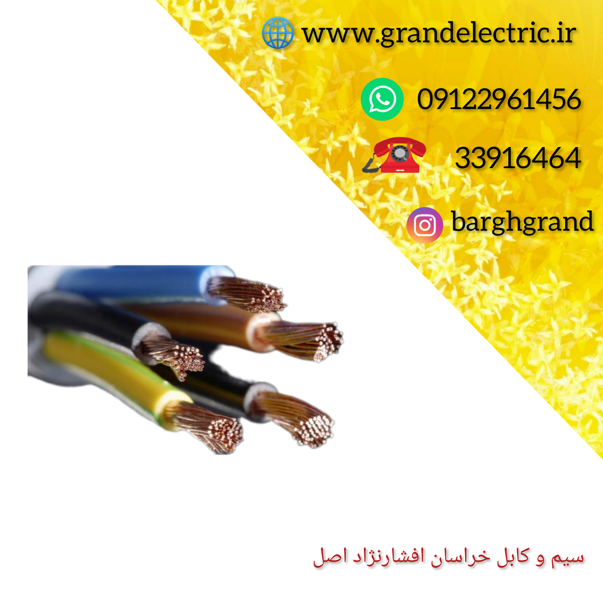 فروش انواع سیم و کابل در فروشگاه اینترنتی گراند الکتریک با مدیریت محمد کامیاب . فروشگاه گراند الکتریک نمایندگی معتبر و رسمی انواع سیم و کابل خراسان افشارنژاد اصل و عرضه مستقیم انواع سیم و کابل خراسان افشارنژاد در سایزهای 1 * 1/5* 2/5* 4* 6* 10* 16* 25* 35 در لاله زار میباشد هر کلاف صد متری این سیم و کابل به شرح زیر میباشد .....